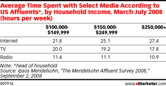 Ipsos Mendelsohn 2008年針對家庭「收入高低」與其「媒體使用時間長短」的調查