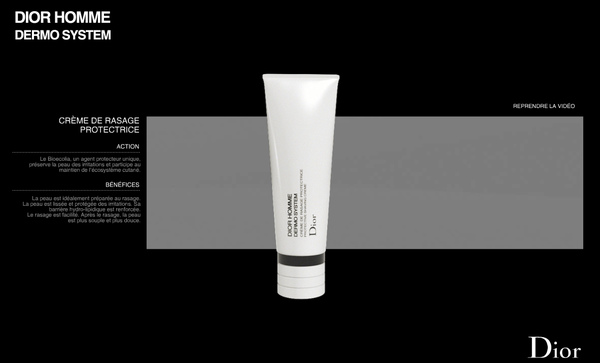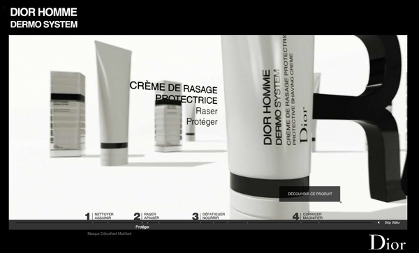 Dior Homme就直接將產品介紹做成互動video,讓使用者觀賞產品系列影片,並可任意暫停或快轉,看想看的片斷,如對任何商品感興趣,還可隨時將產品「抓出來」,翻開商品詳細資訊,讓使用者看的更清楚。