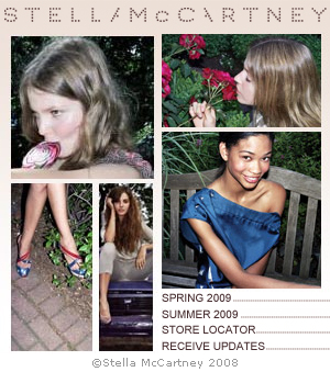 相對於Ralph Lauren的iPhone app,Stella McCartney提供適合手機瀏覽的網站,有iPhone 與Smart Phone兩個版本,雖然在手機網站上,主要只是提供最新商品觀賞,但iPhone 版本裡運用了隨意觸控的特性,Smart Phone版本提供上下的選取的方式,為不同手機做不同之使用規劃,細微差異中看到跨足不同媒體所花的心思。
