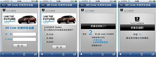 2012台北車展上,台灣的自創品牌LUXGEN便充分利用QR code的方式,除了提供隨時個人的影音欣賞外,傳統的會場互動模式也進階到個人行動裝置上。消費者可以利用個人的行動裝置與品牌互動,取代了過去舉手搶答的方式,透過掃描QR code並回答產品相關問題,消費者靠這手上的行動裝置便可以獲得品牌準備的相關紀念贈品。這樣的互動模式讓消費者可以充分發揮了「行動」的特性,除了方便消費者也增加了更多與消費者互動的機會。